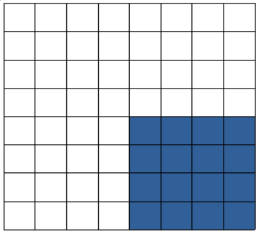 8 x 8 크기의 맵을 모두 탐색을 해보면서, 하얀색으로만 이루어져있는지 혹은 파랑색으로만 이루어져있는지를 파악하면 된다. 위의 경우는 하얀색으로만 이루어져있다는 판단이 있었으므로 하얀색 색종이 1개면 위의 맵을 모두 채울 수 있다라고 생각을 할 수 있다.