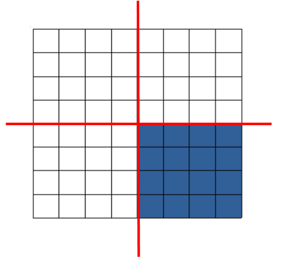 즉 ! 위와 같이 사각형을 4개로 나눠본 것이다. 나눠진 4개의 사각형은 각각, 하얀색으로만 그리고 파랑색으로만 이루어져 있다는 것을 알 수 있다. 2개의 색 중 어느 하나의 색으로만 가득 채워져 있다면 더 이상의 탐색이 필요하지 않다는 것이다.