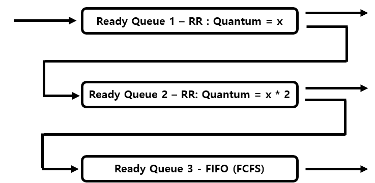 - 이 다음 Queue에서는 이전의 Queue에 비해서 할당시간을 2배 더 큰 값을 할당해준다.