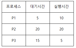 - 위의 공식에서, "대기시간"이 길어질 수록, 더 큰 값을 가지게 되므로, "실행시간이 길다는 이유로, 실행시간이 짧은 프로세스에