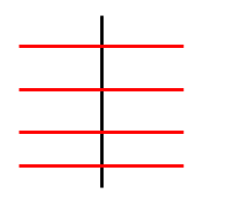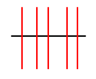 위와 같이 가로선분이 만들어 진다면, 우리는 가로선분에다가 세로 선분을 그어봄으로써 교차횟수를 계산을 할 수가 있다.