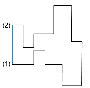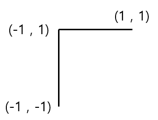 이와 같이 "세로선분" 으로 연결되어 있다는 것을 의미한다. 여기서 두 번째와 세 번째 입력 좌표를 살펴보면 (-1 , 1)과 (1 , 1)이 되는데 이를 위의 그림에서 이어서 표현해보면 다음과 같다.